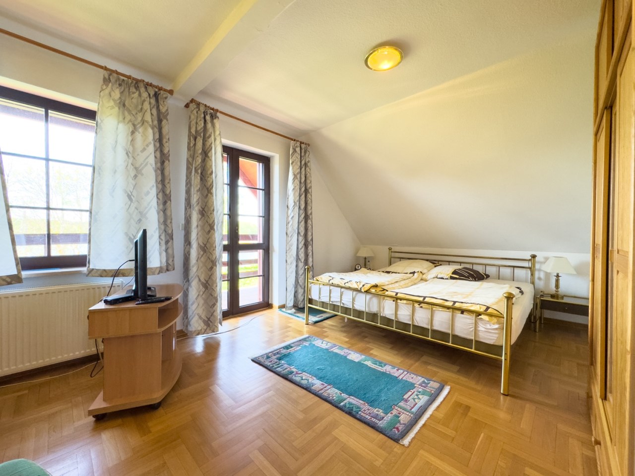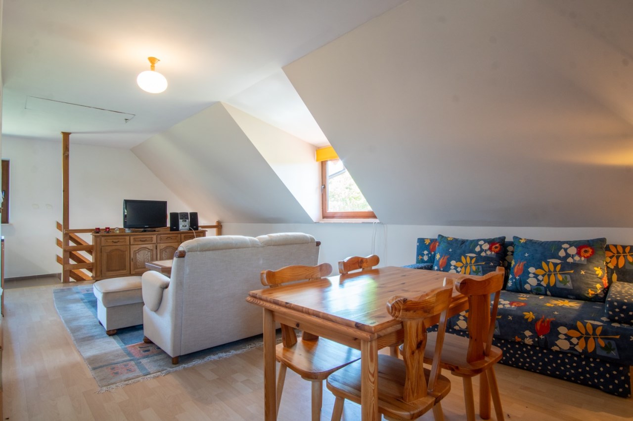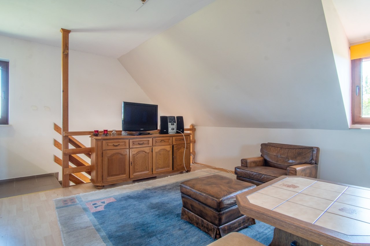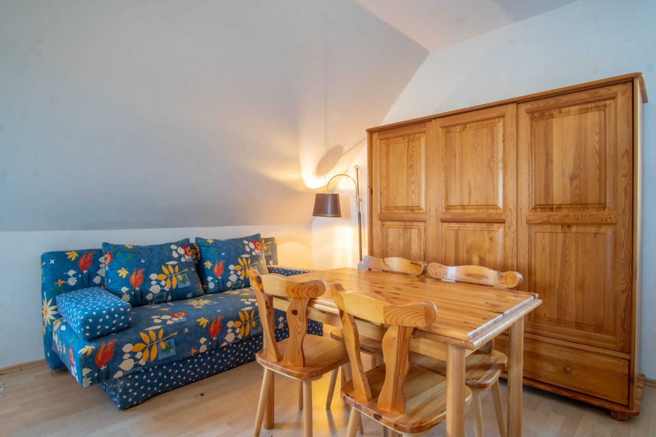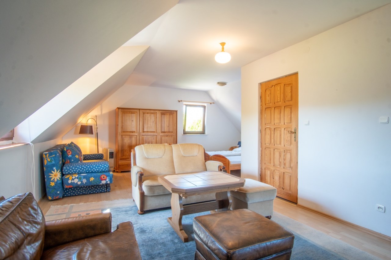 • Na piętrze niezależne mieszkanie z aneksem kuchennym i łazienką – idealne dla gości lub pod wynajem.