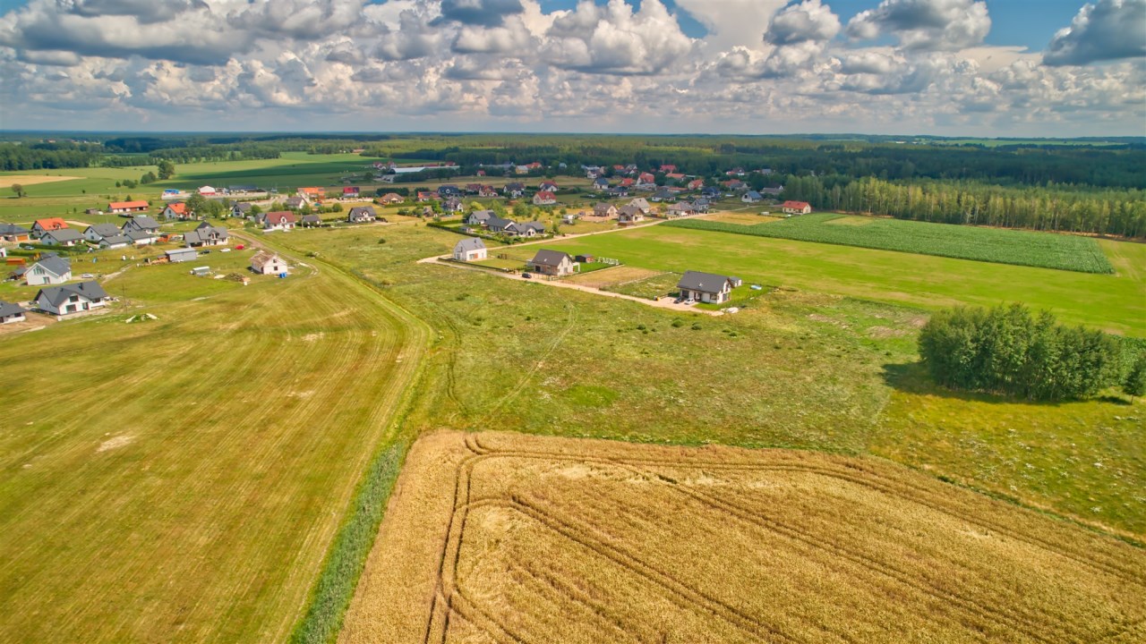 Teren jest płaski, dobrze nasłoneczniony, z widokiem na pola i las, co zapewnia prywatność i komfort mieszkania z dala od miejskiego zgiełku. W najbliższej okolicy znajduje się zabudowa mieszkaniowa jednorodzinna, co czyni to miejsce idealnym pod budowę własnego domu.