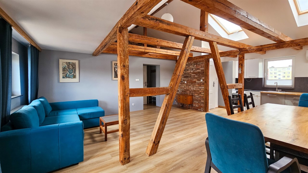 Mieszkanie jest w stanie idealnym, gotowe do wprowadzenia się bez konieczności ponoszenia dodatkowych nakładów finansowych. Składa się z dużego salonu połączonego z jadalnią oraz otwartą kuchnią, a także przestrzenią wypoczynkową, z możliwością wydzielenia dodatkowego pokoju. Wygodna sypialnia posiada wydzieloną garderobę zamykaną przesuwnymi drzwiami.