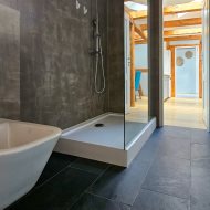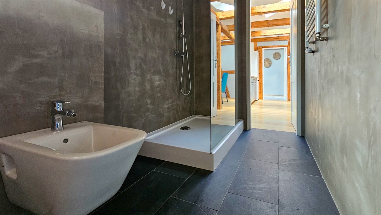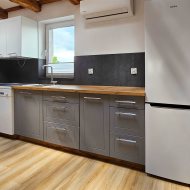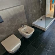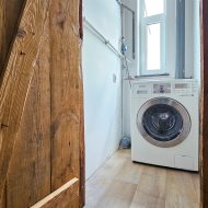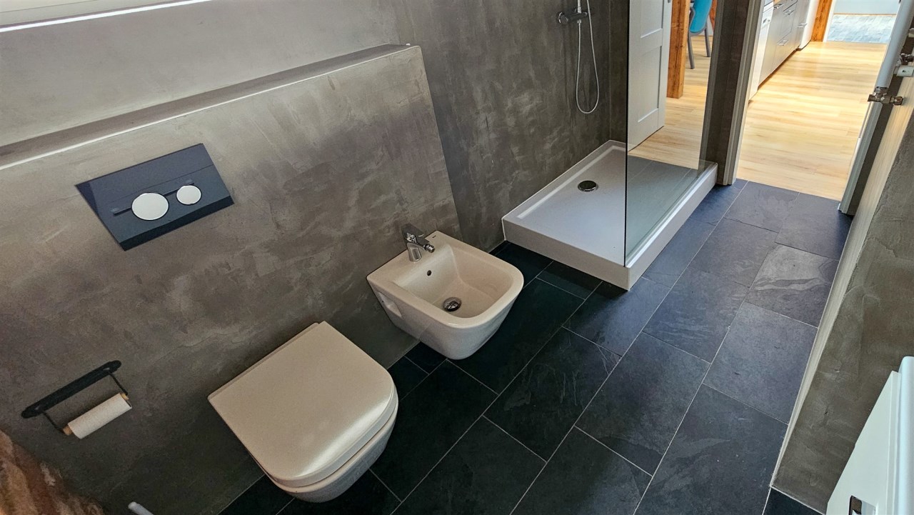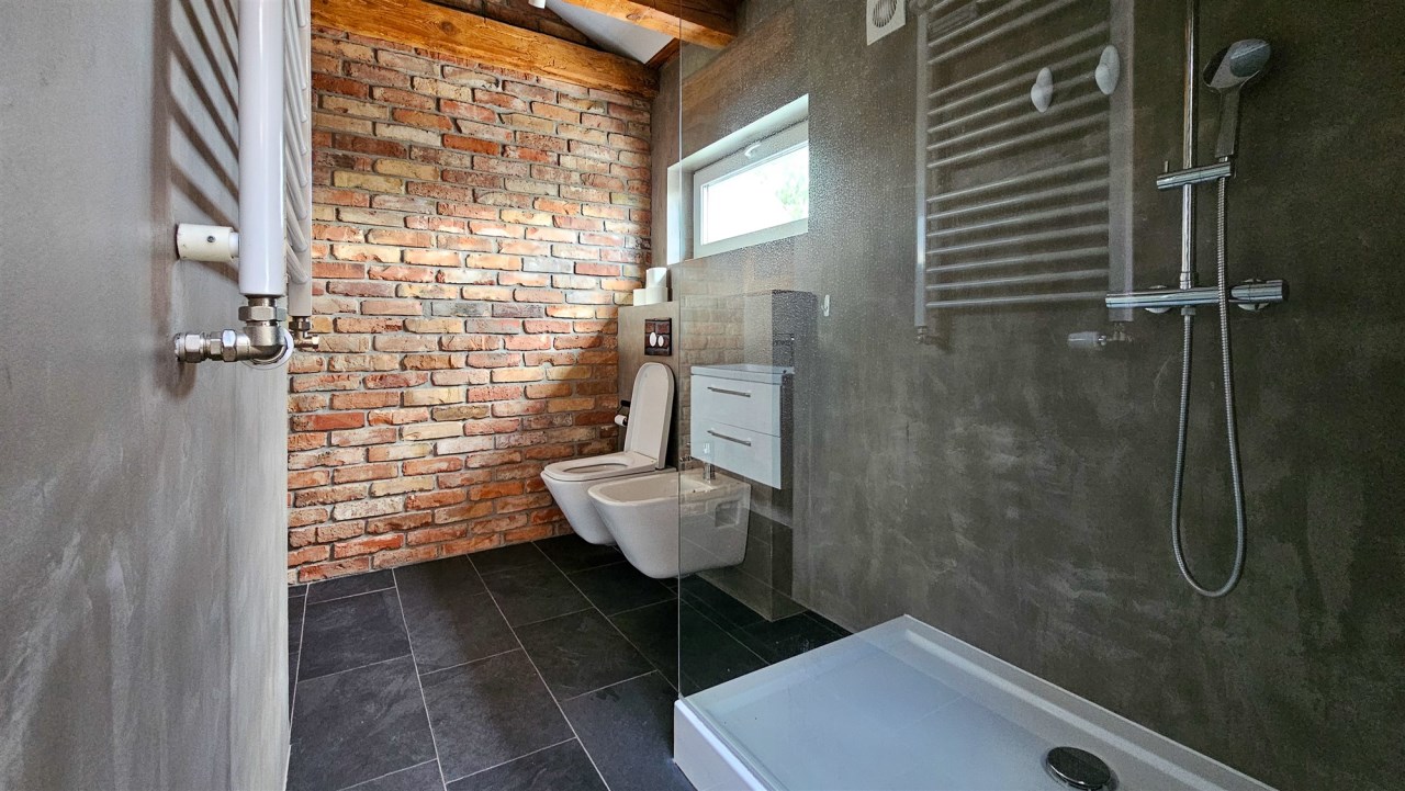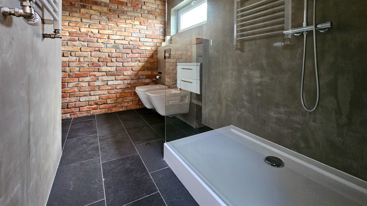 Łazienka została wyposażona w prysznic, umywalkę, WC oraz bidet. Na podłogach znajdują się panele, a trzyszybowe okna PCV zapewniają bardzo dobrą izolację. Kuchnia jest w pełni umeblowana i wyposażona w sprzęt AGD, w tym zmywarkę, lodówkę, okap oraz kuchenkę. W mieszkaniu zamontowana jest klimatyzacja. Dodatkowym udogodnieniem jest pralnia o powierzchni około 2 m², mieszcząca się w prywatnej części klatki schodowej na pierwszym piętrze.