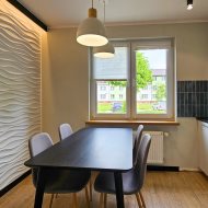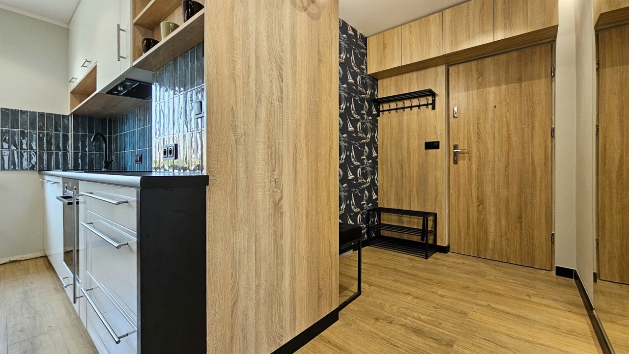 Lokal mieszkalny o powierzchni 38,5 m² został kompleksowo wykończony według projektu architekta, z dbałością o detale estetyczne i ergonomiczne. Dodatkową powierzchnię stanowi piwnica oraz komórka w formie garażu w zabudowie szeregowej – łączna powierzchnia nieruchomości to aż 54 m².